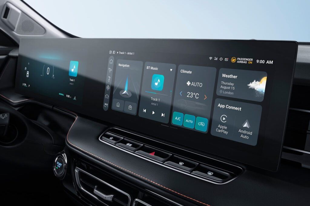 Der Innenraum des MG HS verbindet digitale Hightech-Ausstattung mit angenehmer Atmosphäre. Charakteristisch sind die zwei großen 12,3-Zoll-Displays im Cockpit, die Navigation, Infotainment und Fahrinformationen nahtlos integrieren. Smartphone-Anbindung via Apple CarPlay und Android Auto, Online-Dienste, kabelloses Laden und moderne Materialwahl schaffen ein hochwertiges, nutzerfreundliches Ambiente. Dank verlängertem Radstand ist das Platzangebot für Passagiere bemerkenswert, und der variable Ladebereich bietet großzügigen Stauraum für Alltag und Freizeit.